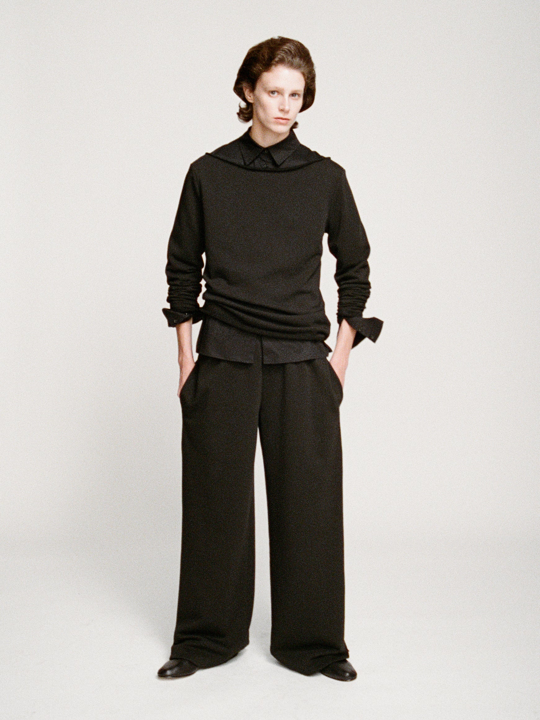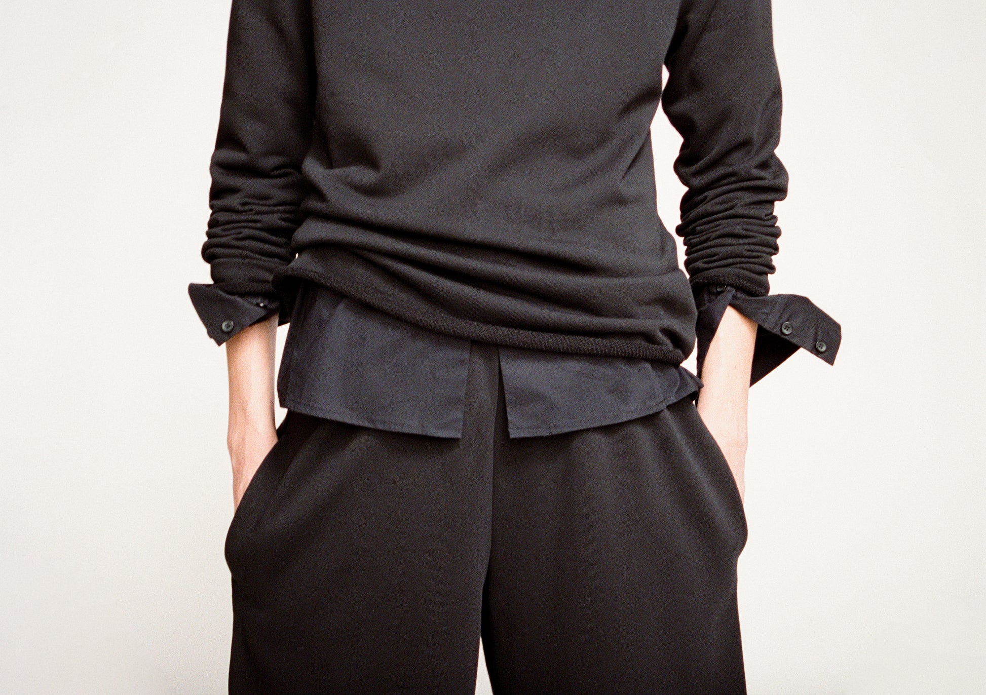 Oversize-свитшот с необработанным краем рукава, линии горловины и низа выполнили из хлопкового френч терри. Изящый вырез-лодочка делает изделие элегантным и стильным.